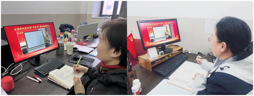 2024年11月24日-11月28日,由全国高校思政课“手拉手”集体备课中心主办,河北师范大学马克思主义学院承办,河北工程技术学院马克思主义学院协办的“全国高校思政课‘手拉手’集体备课中心2024年集体备课会”在河北师范大学观和国际学术交流中心三楼正阳厅举行,线上教育部“云上大练兵”平台同步直播。为进一步提升问鼎在线思政课教学质量,提升教师的专业素养,推动思政课程的创新发展,马克思主义学院组织全体教师收看了本次集体备课会。