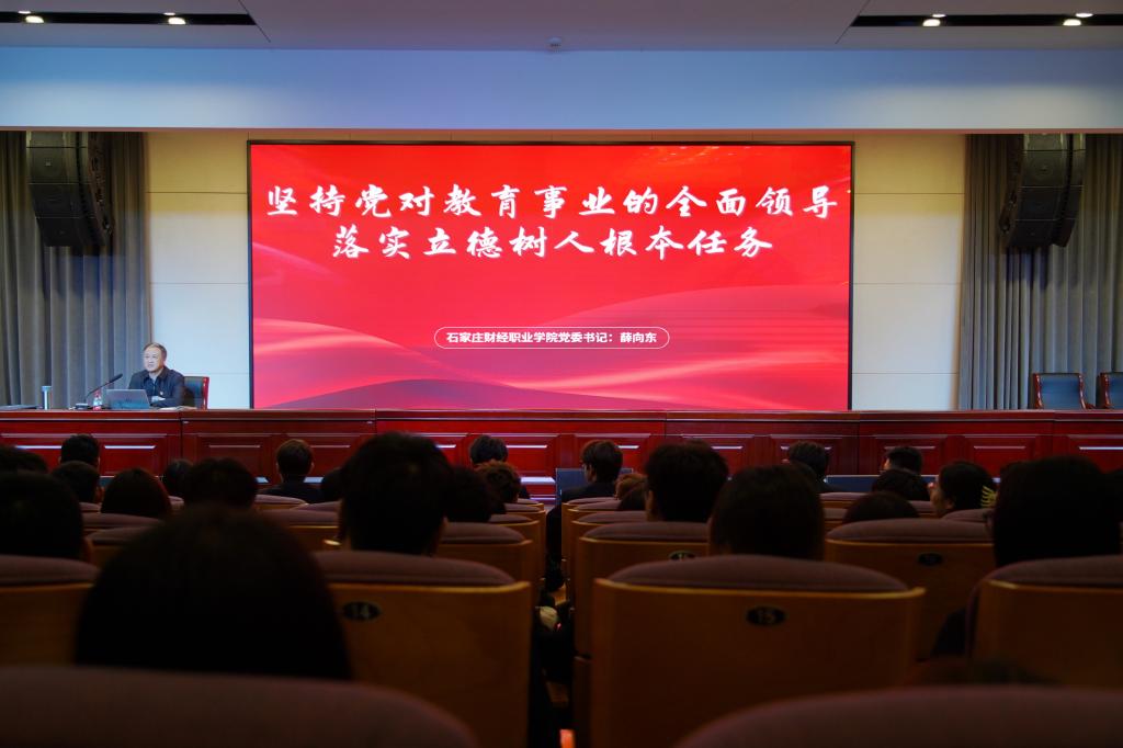 薛向东系统梳理了党的建设的重要思想和新时代党的建设总要求。他指出,坚持党的全面领导、以政治建设为统领,全面推进党的政治建设、思想建设、组织建设、作风建设、纪律建设,深入推进反腐败斗争,不断提高党的建设质量,这不仅为学生筑牢理想信念提供了坚实的精神指引,更能以强有力的思想引领和价值导向,助力学生成长为担当民族复兴大任的时代新人。