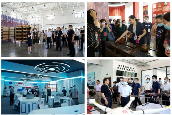 在校领导的陪同下,河北中华职业教育社一行首先参观了智慧物流实训基地、商贸物流展室、新媒体大数据实训室、数字企业全景运营中心、会计文化展室、无人机实训室、幼儿构建实训室等实训室。河北中华职业教育社及社团成员对学校智能化、现代化实训大楼表示高度赞赏。